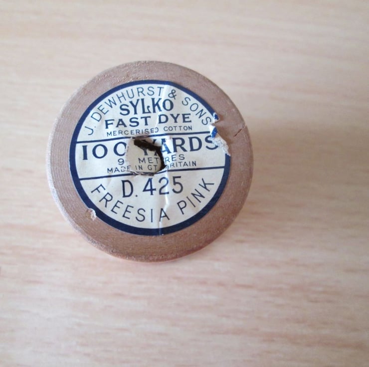 There are all pre-owned, vintage reels and have signs of use - some labels have holes from machine spindles, some labels are missing, some threads have faded a little. The empty Sylko reel is D425 - Freesia Pink and the other colours are as follows:
