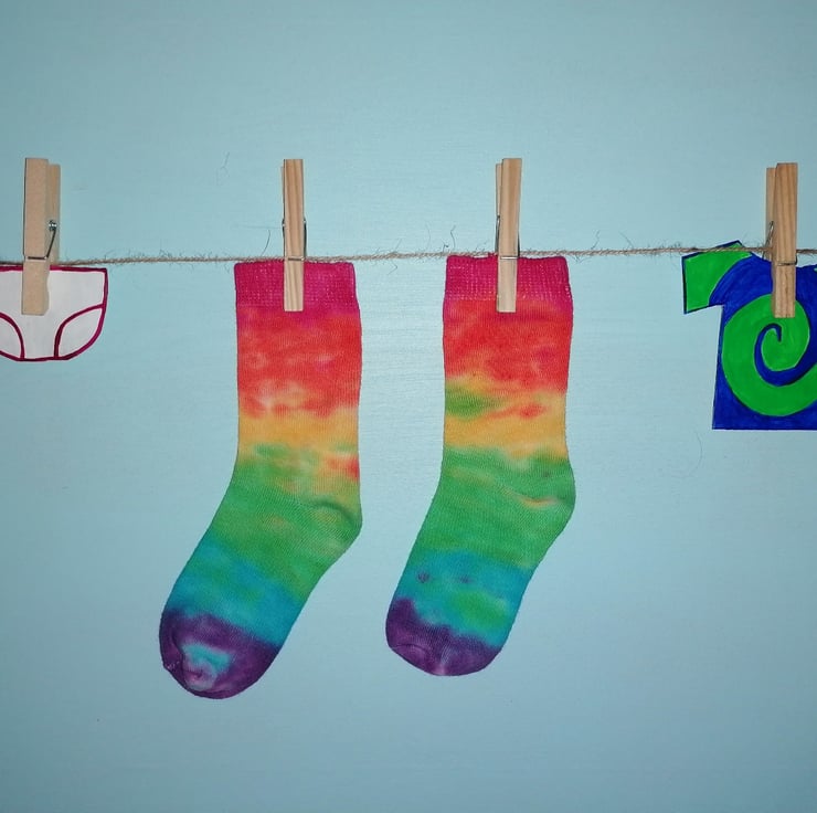 Available in all sizes from newborn to adult, these rainbow tie dye socks are a great way of adding a pop of colour to any outfit.
