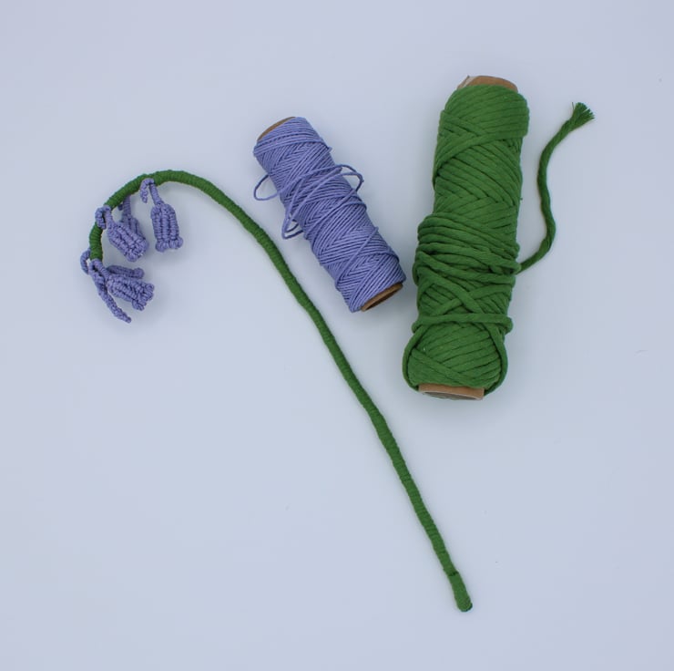 I have used hemp for the bells themselves and recycled cotton for the stems. Florists wire runs through each flower.