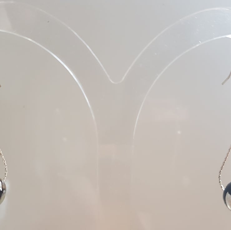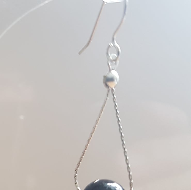 So I have used a flexible chain, that is usually used for necklaces, threaded through the beads, and then looped into a silver calotte. This then hangs from hand made silver ear wires.