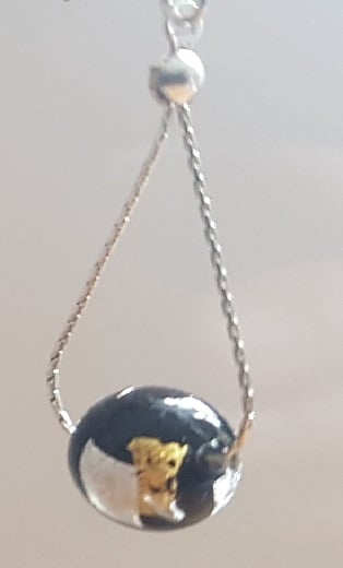 A lovely pair of Murano beads - Midnight Treasure - suspended on silver beading chain.