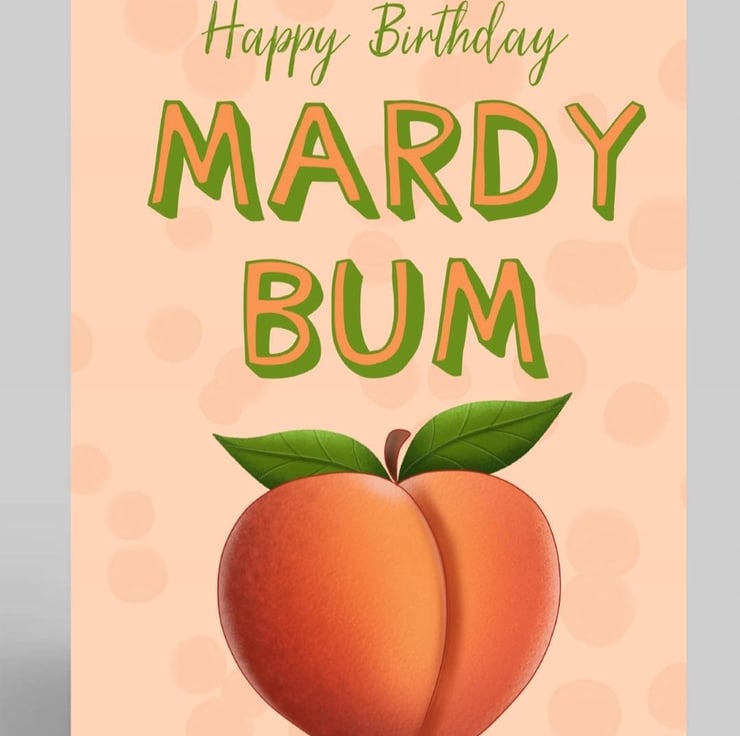 A5 Birthday card with a digitally designed peach design inspired by Arctic Monkey's Mardy Bum.