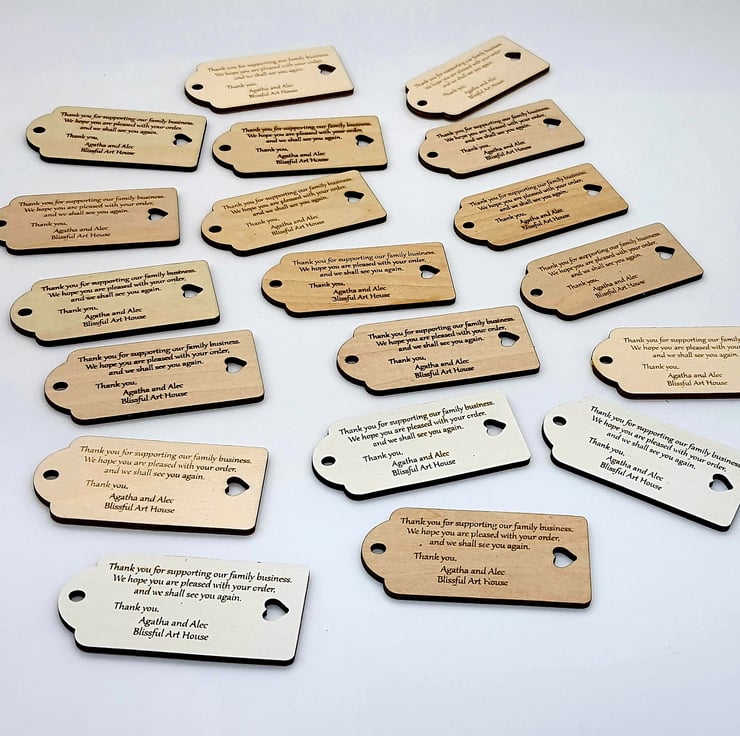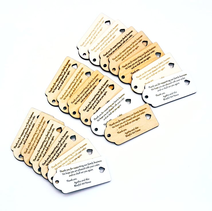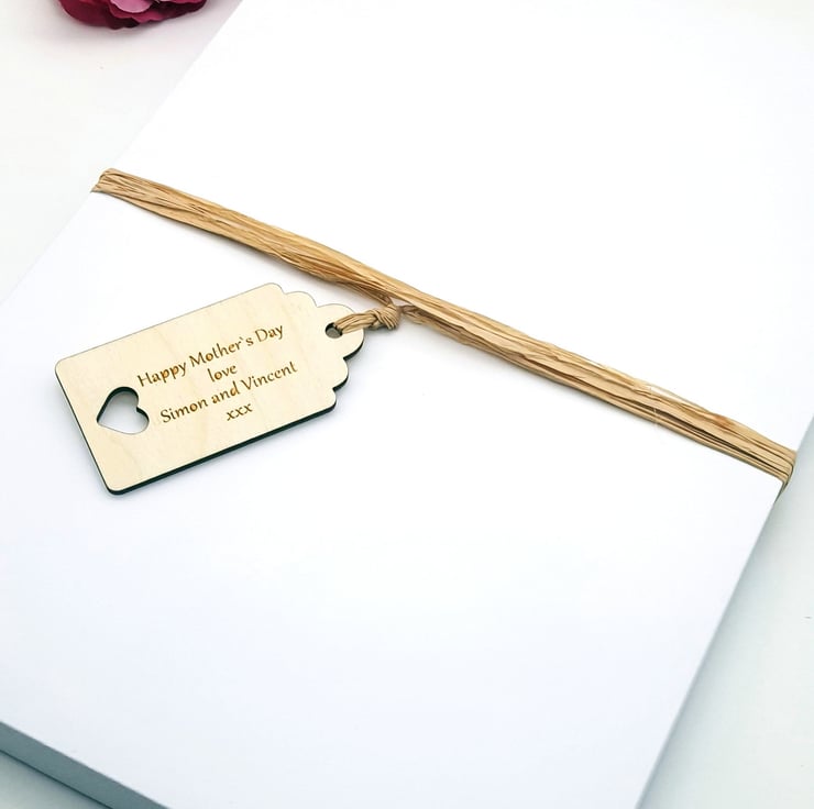 Wood engraved, personalised gift tags for all special occasions in choice of two colours: natural wood and painted white. You can add any message up to 4 lines and we'll beautifully engraved it on your gift tag.