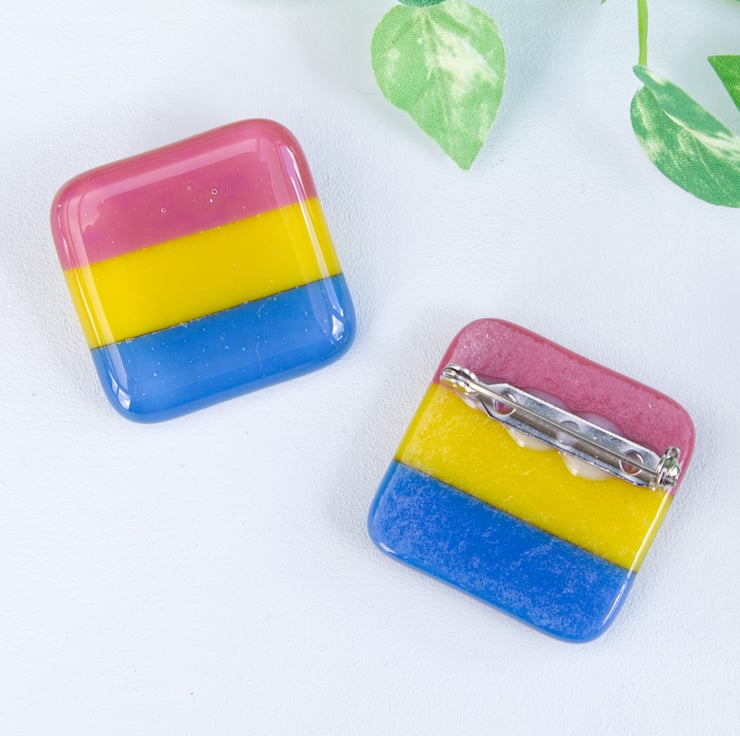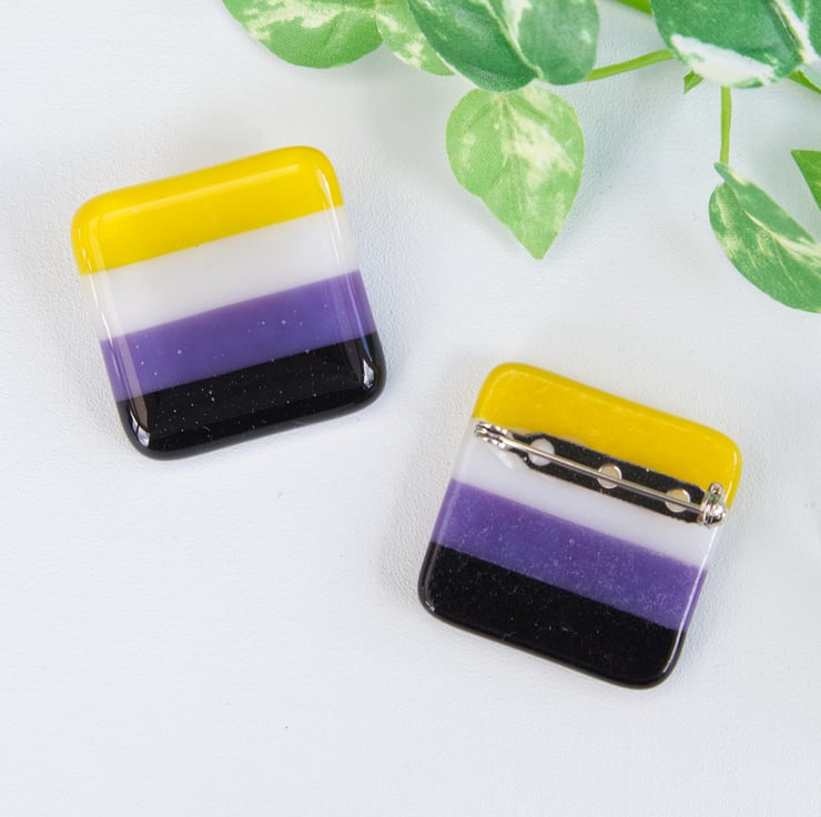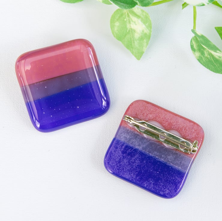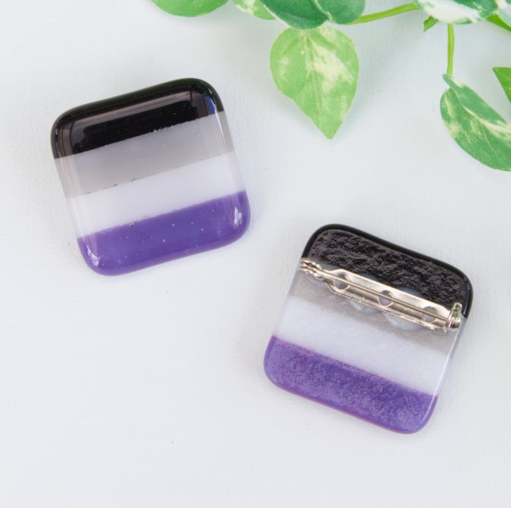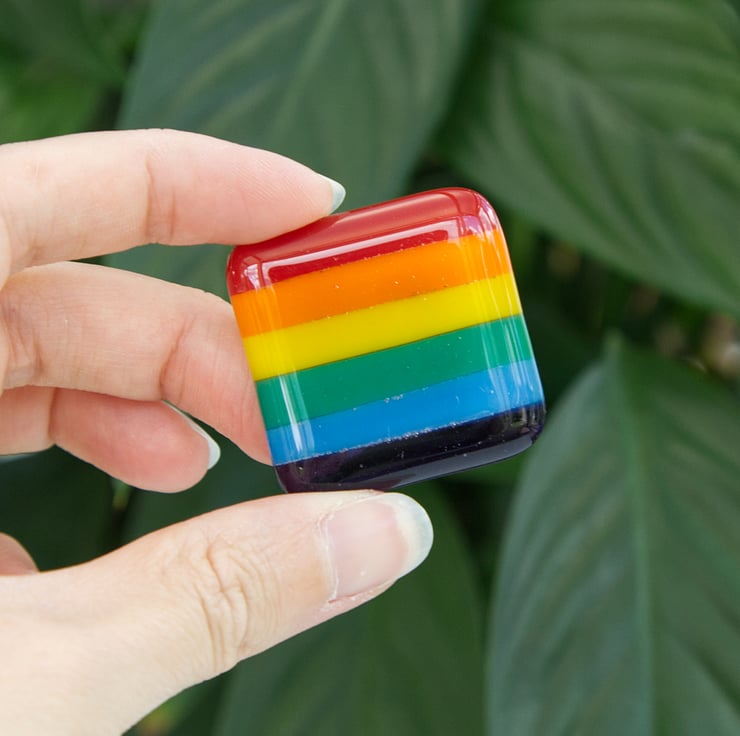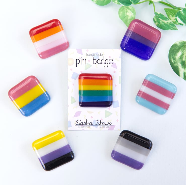 Show off your pride with these handmade fused glass badges. There are 7 main designs, Rainbow, Bisexual, Lesbian, Non-Binary, Asexual, Pansexual and Transgender (select which you'd like from the drop down menu). If there's a pride flag you would like but isn't here, then do get in touch, I don't want anyone to be left you (there may be constraints with the glass colours available to me, however I will try my best to accommodate).