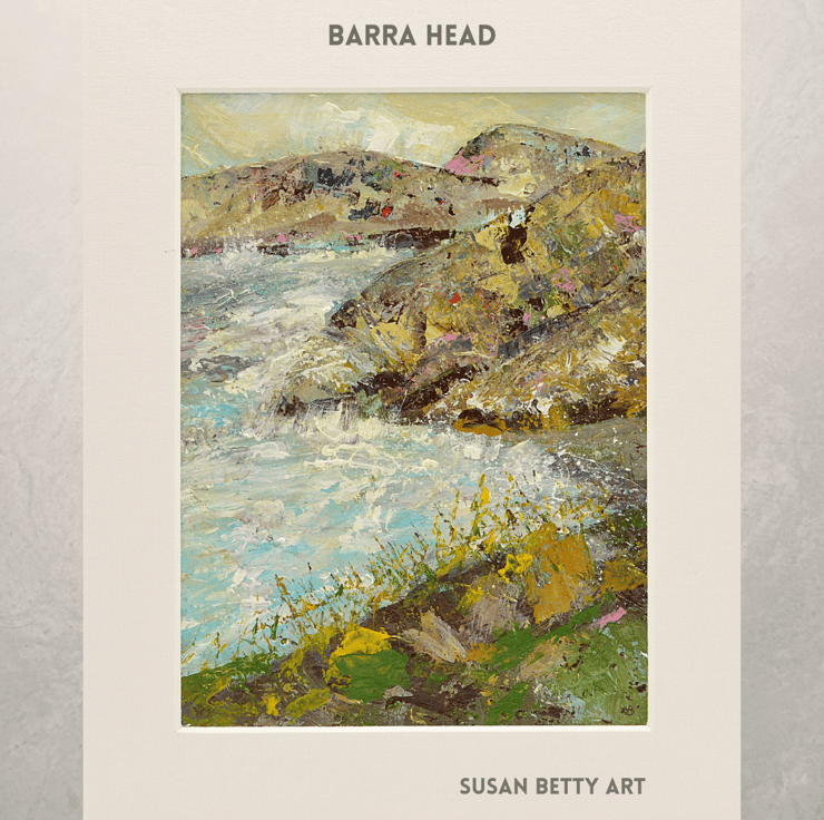 This acrylic painting is of Barra Head in the Outer Hebrides. I wanted to capture the raw power of the sea pounding on the granite coastline. Much of the south coast is dominated by rocky, craggy cliffs and they are a dramatic sight all year long. This would make an ideal gift for anyone interested in the Scottish coastline or any art lover.