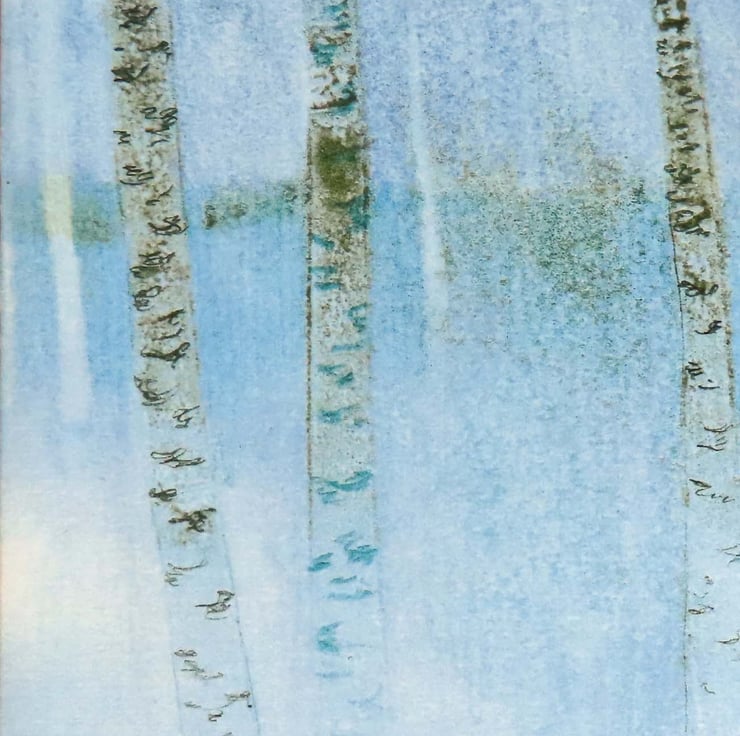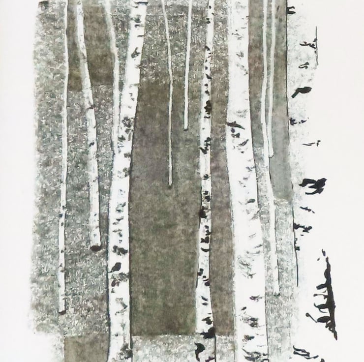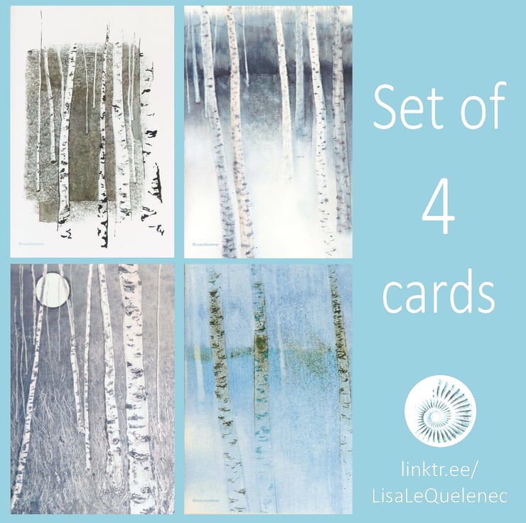 A set of four evening birch tree forest cards / notelets reproduced with images from my original paintings.
