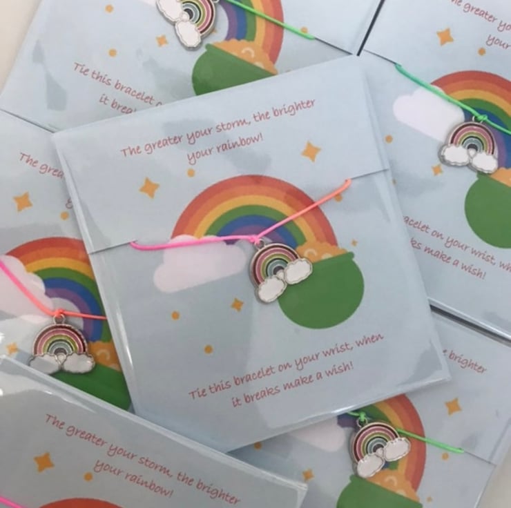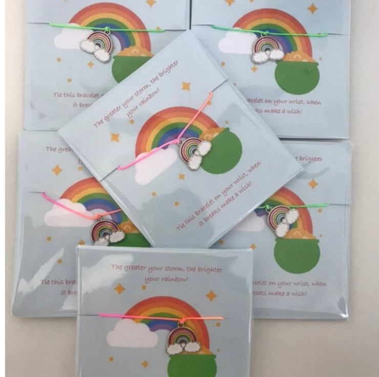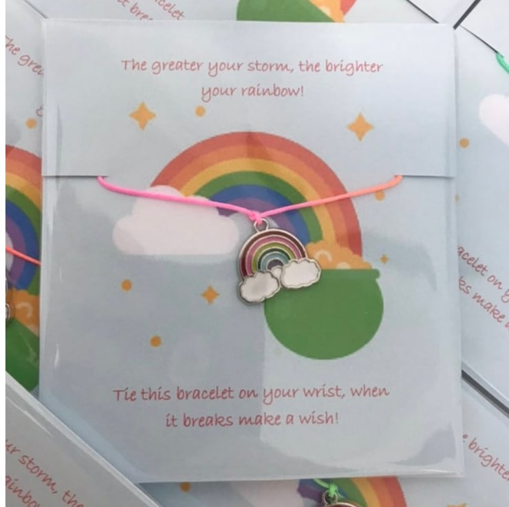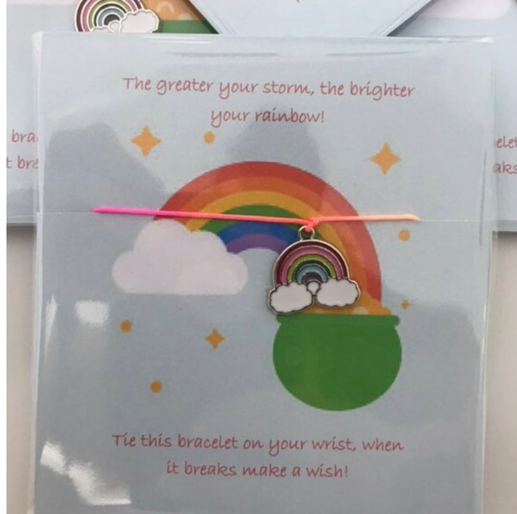 Motivational inspiring rainbow charm bracelet wrapped in cellophane