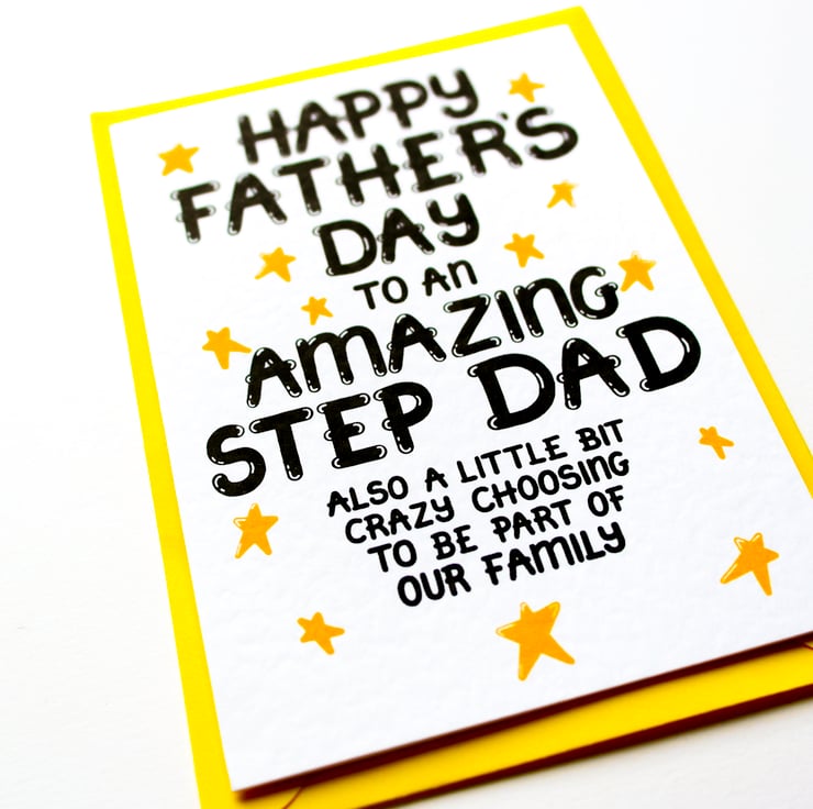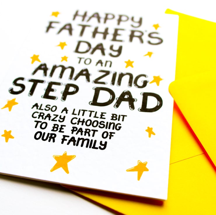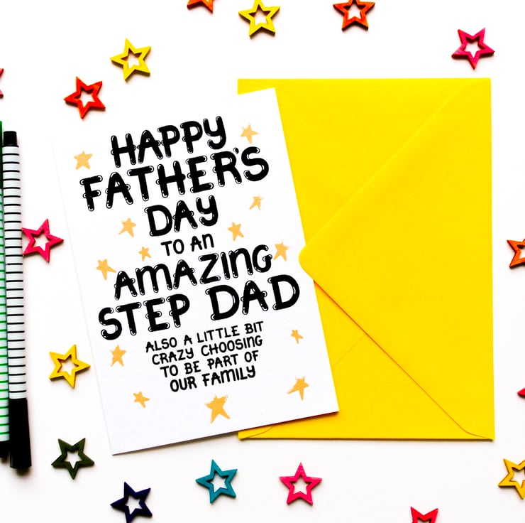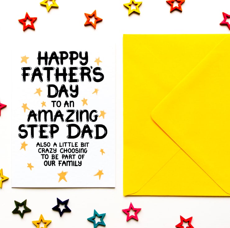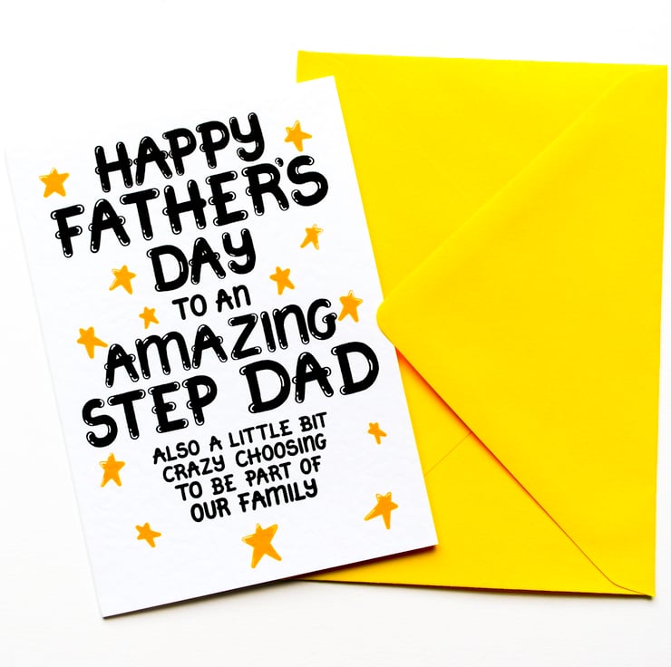 Greeting on front: HAPPY FATHERS DAY TO AN AMAZING STEP DAD ALSO A LITTLE BIT CRAZY CHOOSING TO BE PART OF OUR FAMILY