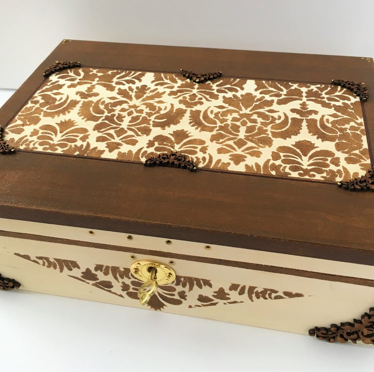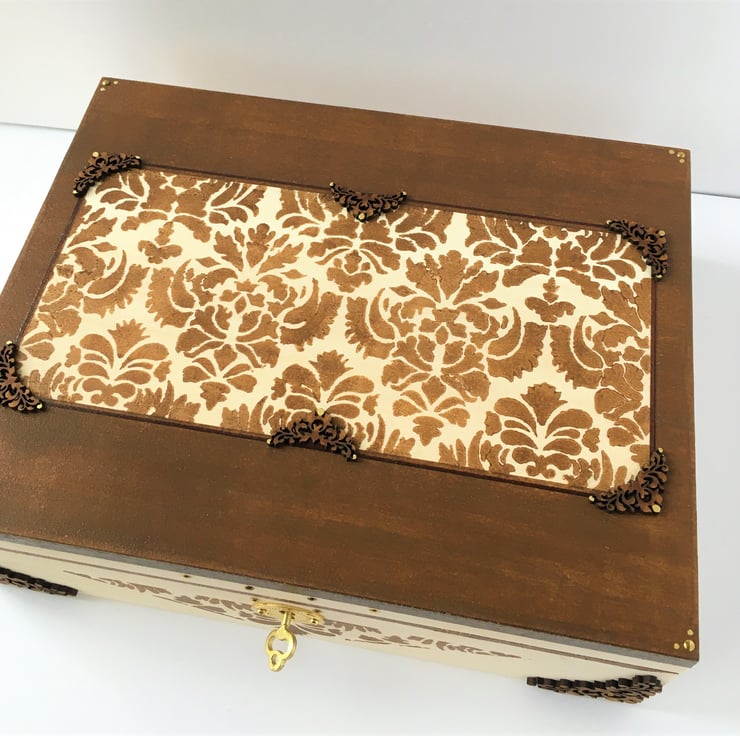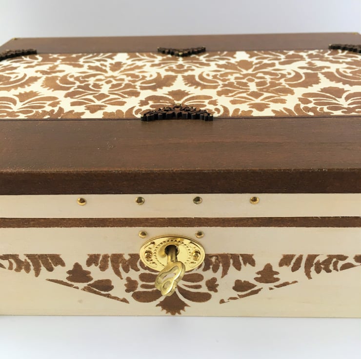 LOCKABLE AGED One of a Kind Decorative Walnut stain Wooden Box by Livz Design