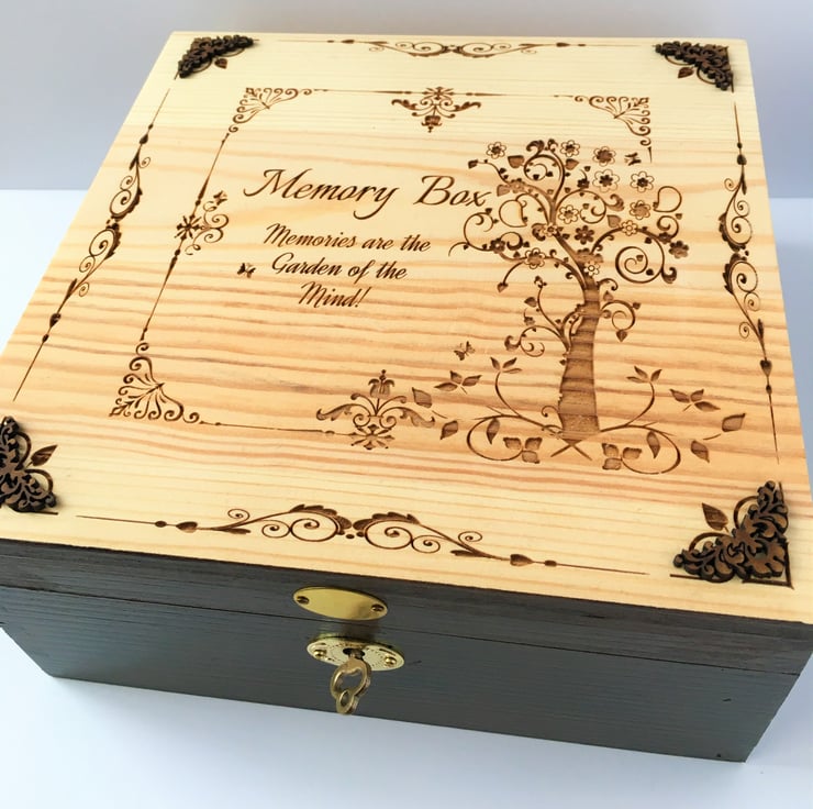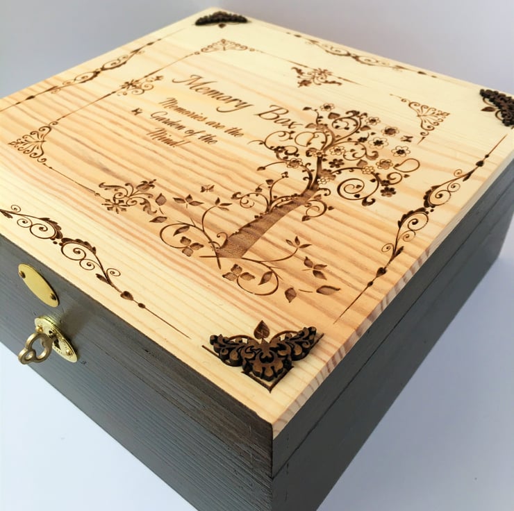 LOCKABLE Engraved Wooden - GARDEN of the MEMORY BOX - Walnut Stain & natural wood by Livz Design