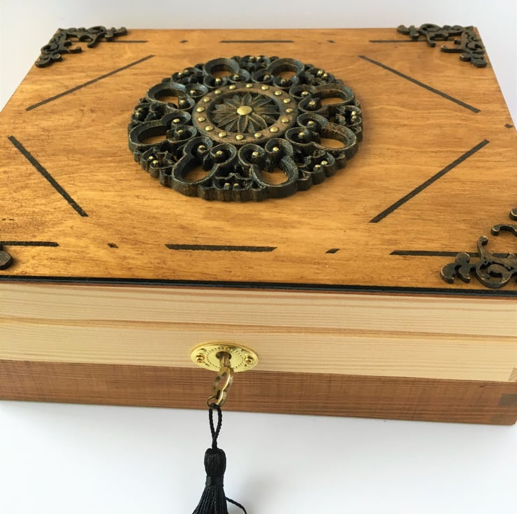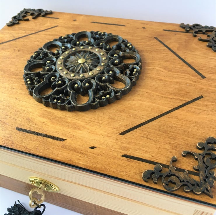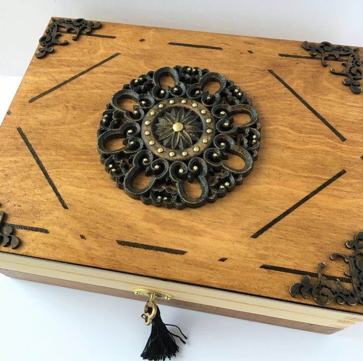 LOCKABLE Wooden Decorative Box with Wooden ON-LAY and 6 dividers by Livz Design