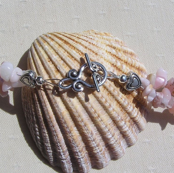 This Stunning Necklace is made from Rhodonite Oval Beads separated by faceted Pink Morganite rounds beads & tiny silver spacers with a final flourish of double stranded Pink Opal Gem Chips - a Beautiful glistening combination that will look stunning either worn casually or with something more Elegant for a Special Evening out