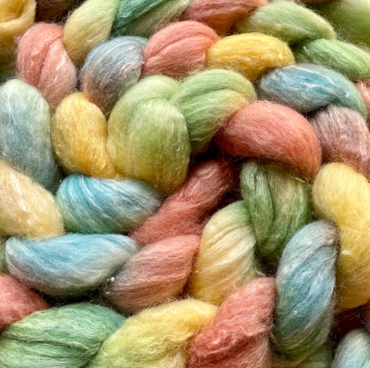 Super soft Merino with the strength and sheen of Bamboo and a touch of tweed tops for texture makes a fibre that dyes just beautifully.