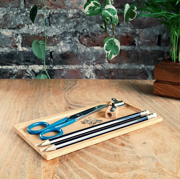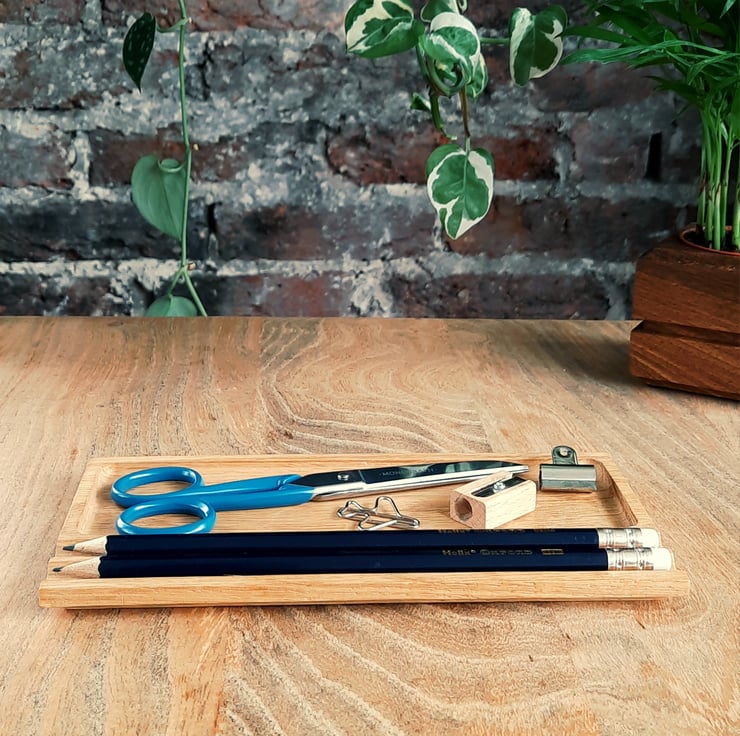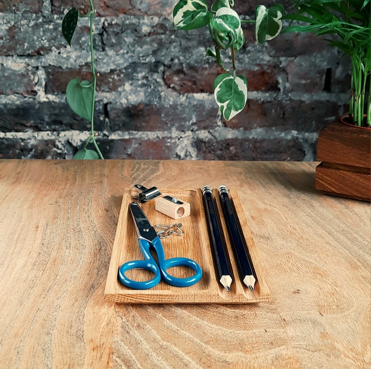 The Compton Single, named after the street leading to Eastbournes Lawn Tennis Club, is our classic Pen & Tray desk organiser. It comprises of two pen slots and a large, single tray for your essential bits and bobs. Presented in a simple and practical design that lets the natural beauty of oak shine through, your desk organiser will appear to float on your work surface and sits unobtrusively in almost any setting.