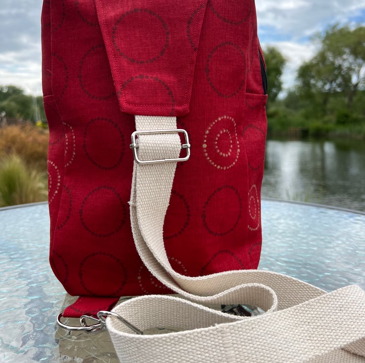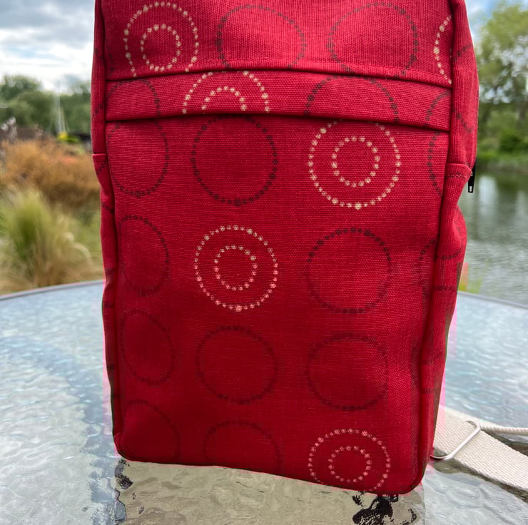 Large enough for phone, purse, keys and other essentials, but small enough to be useful without bulk, this red canvas bag would make a lovely gift.