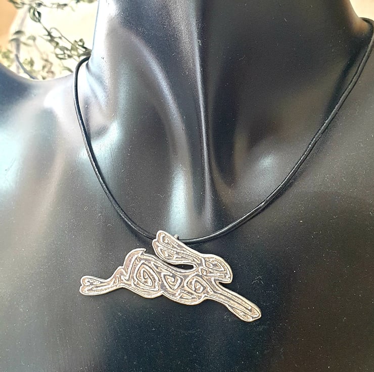 This silver hare pendant measures approximately 5cm wide by 2cm high and comes all ready to wear suspended on a leather cord necklace with a sterling silver catch. (A delicate silver chain can be supplied as an vegan friendly alternative to the leather necklet if required, please just leave me a note at checkout if you would prefer this.)