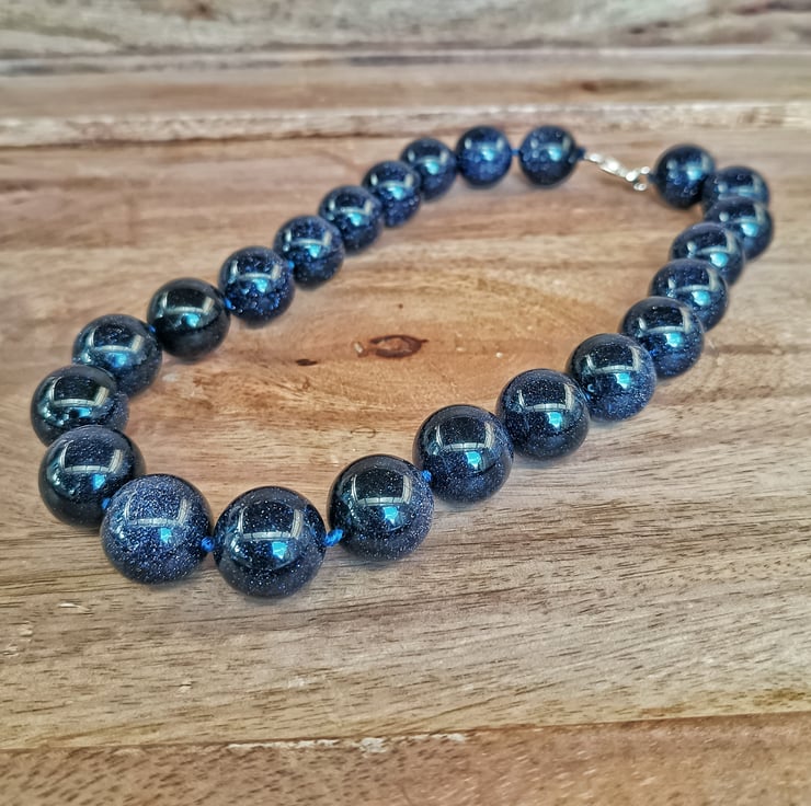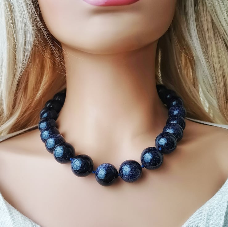 Transform yourself into a Glowing Beauty when wearing this stunning Midnight Blue Sandstone necklace. The blue sandstone beads radiate an amazing deep midnight blue colour. You will love this piece for those special occasions...