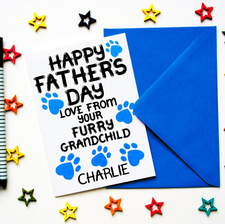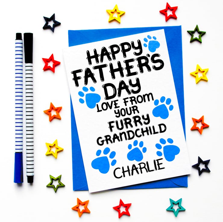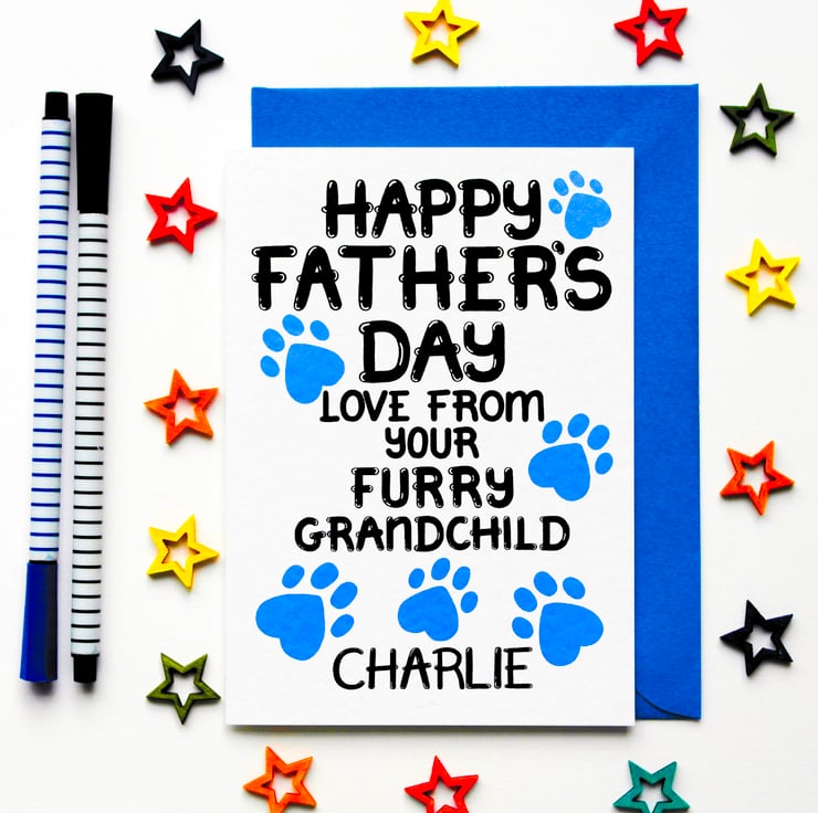 Personalised Fathers Day Card From Furry Grandchild, Cute Custom Father's Day
