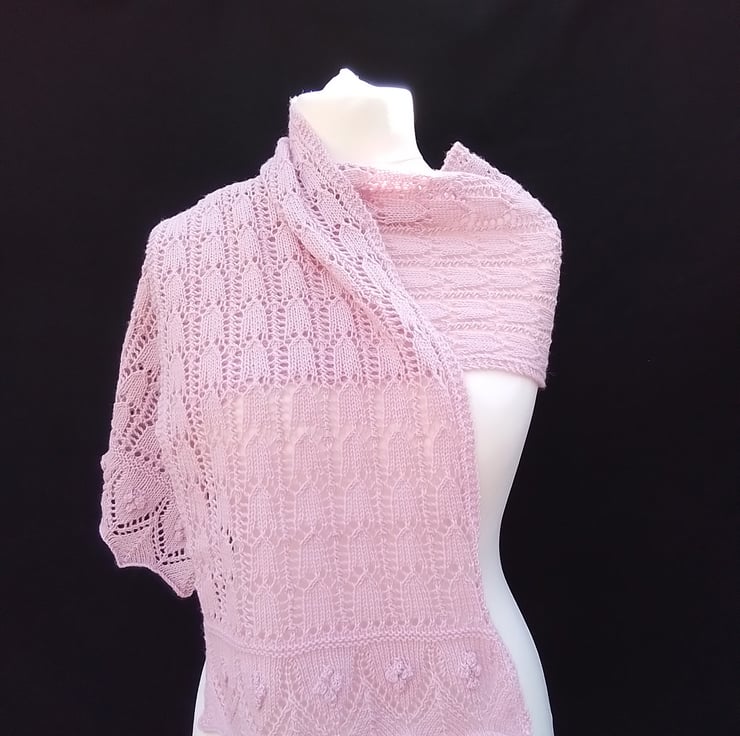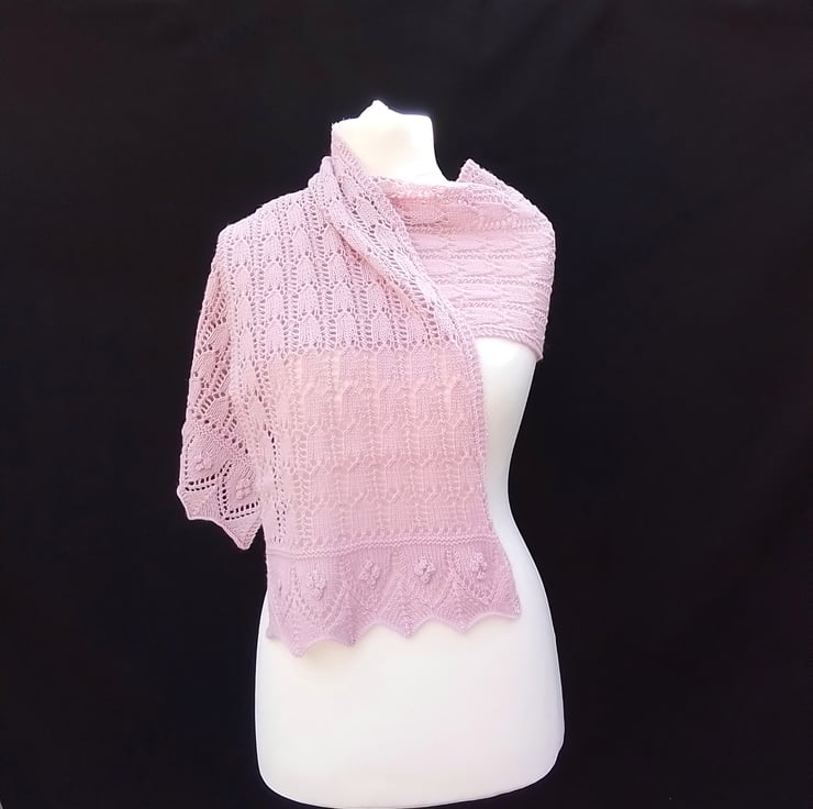 To preserve the allure of this delicate shawl, we recommend hand washing only. Avoid tumble drying, opting instead to dry it flat to maintain its shape and intricate lace pattern. While the yarn manufacturer suggests a low iron setting, we caution against ironing to ensure the enduring beauty of this hand-knitted creation.
