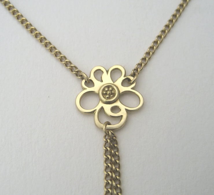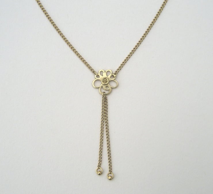 Handmade in my North Yorkshire studio, this unique pendant is based on my Primrose inspired work and is made from solid 18ct Yellow Gold. The central flower has two 18ct Gold Curb Chains finished with Gold Beads that hang at the bottom.