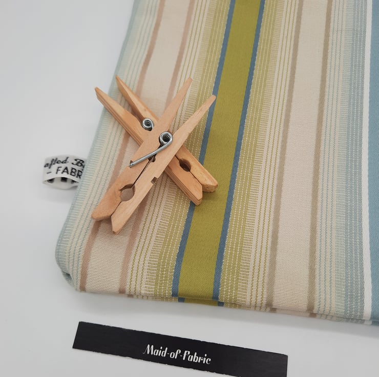Striped clip on peg bag, lined with a cream cotton.