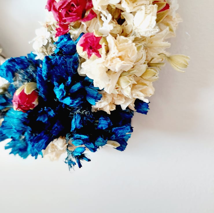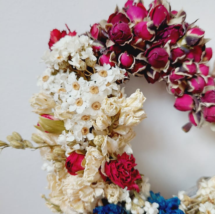 A dried flower wreath/arrangement will look beautiful for many months if kept out of direct sunlight