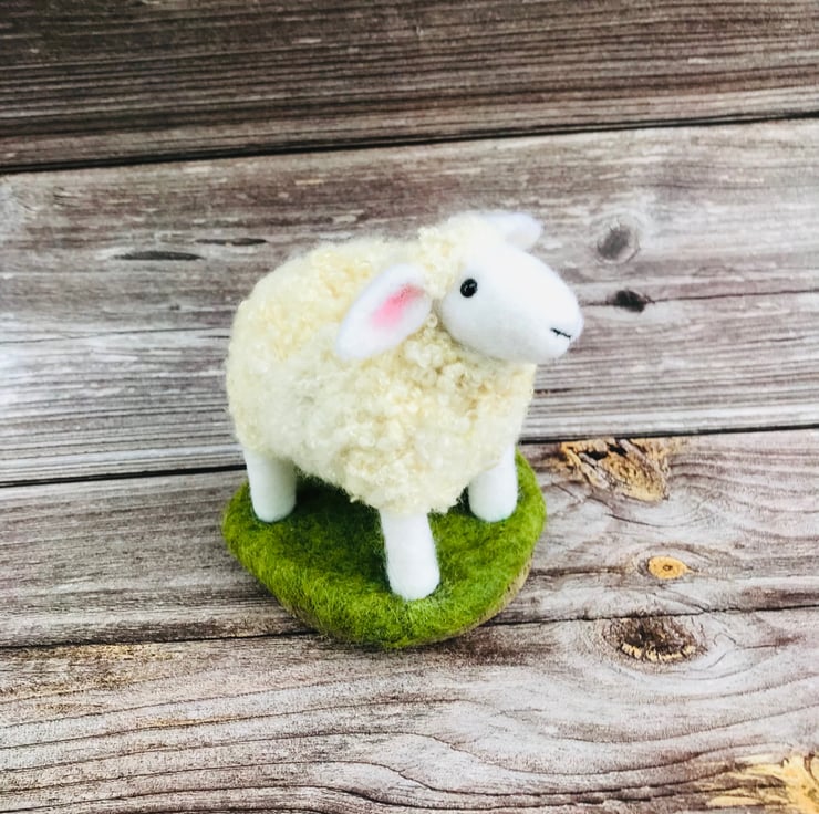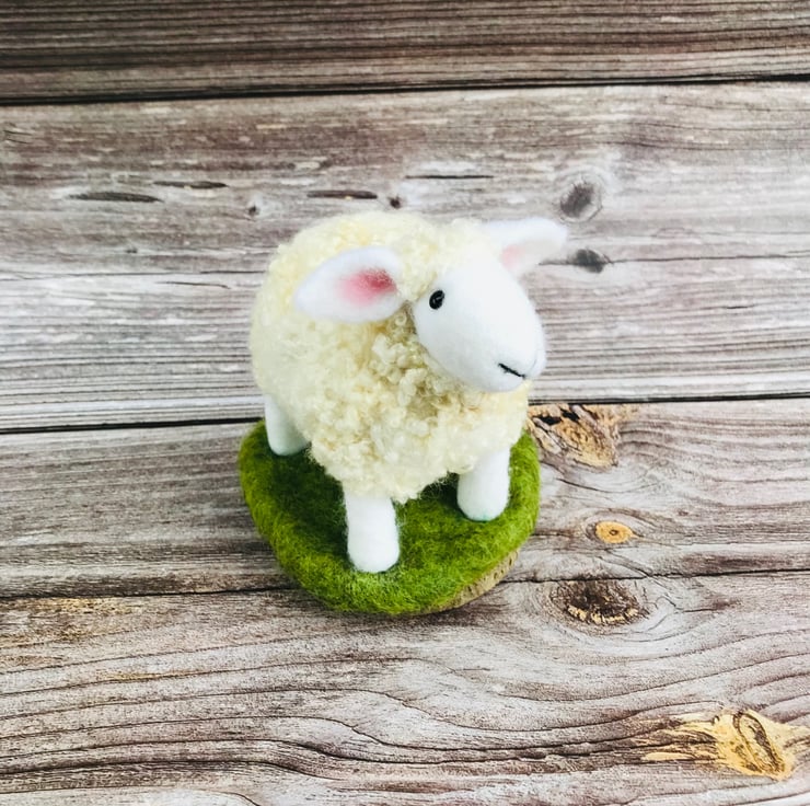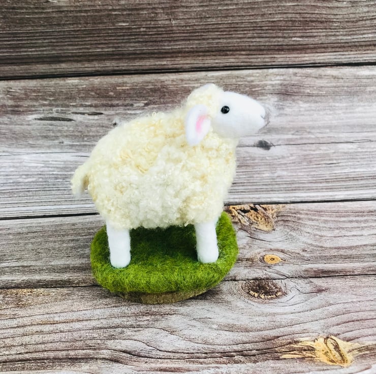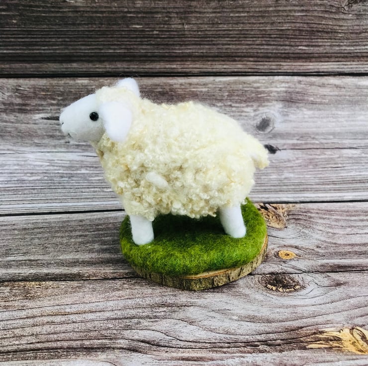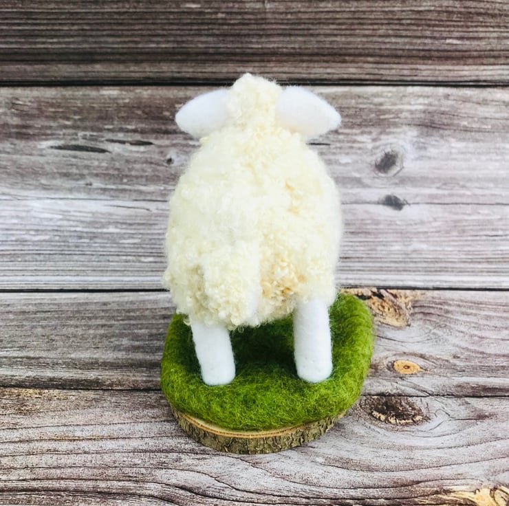 This is Stella - she is a Needle Felted curly Sheep on wooden base.