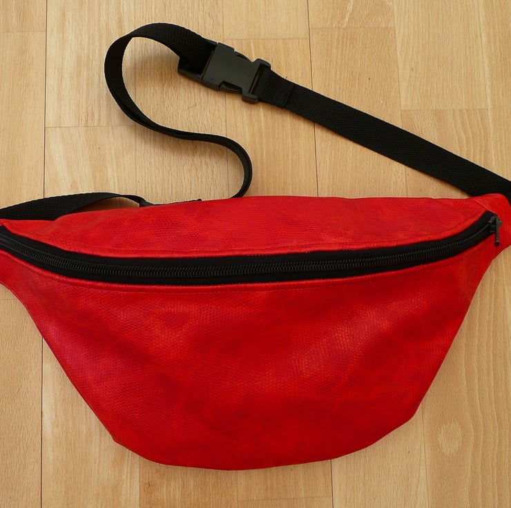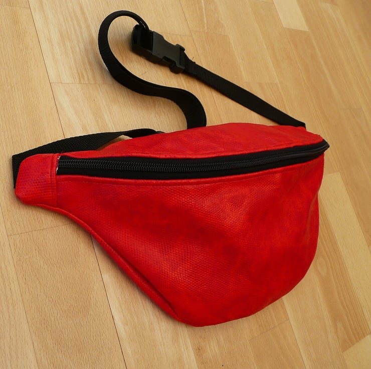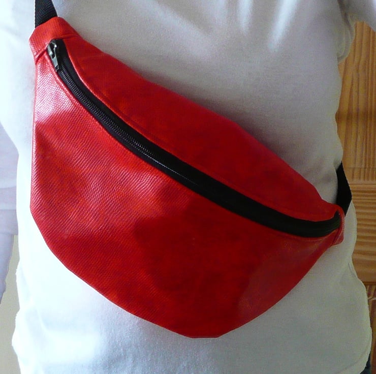Bum bag, crossbody bag, red vinyl shoulder bag, festival bag, stallholder bag