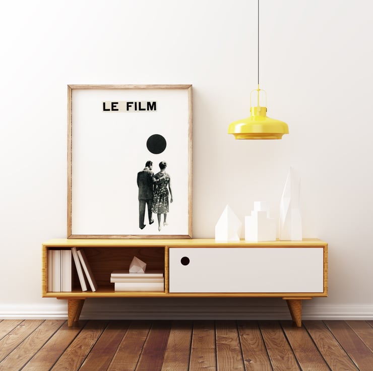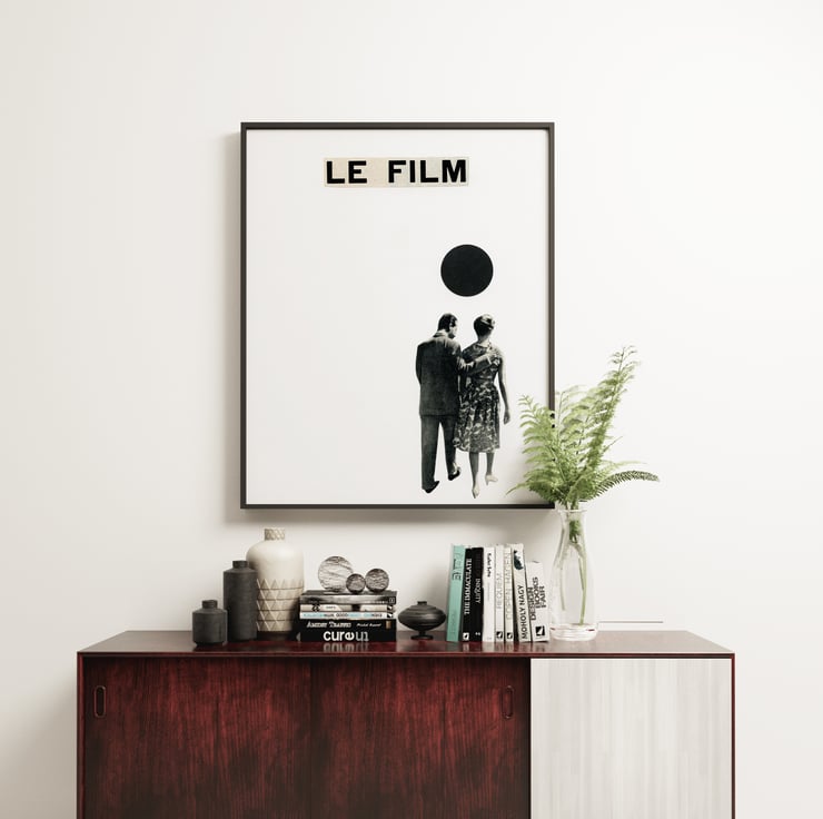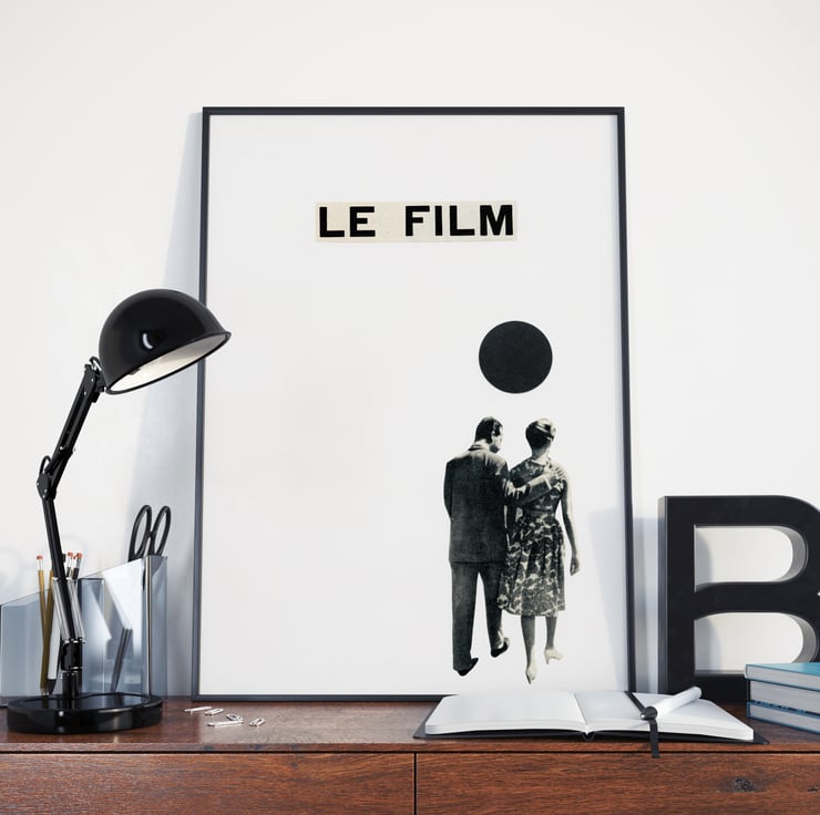 A beautiful monochrome movie print, inspired by old black and white films. Ideal for any room.