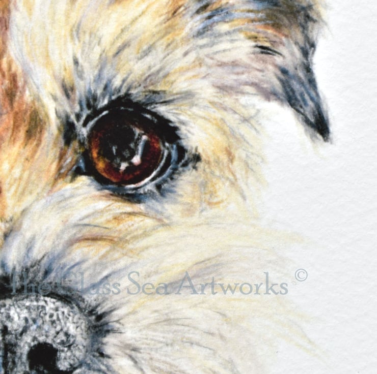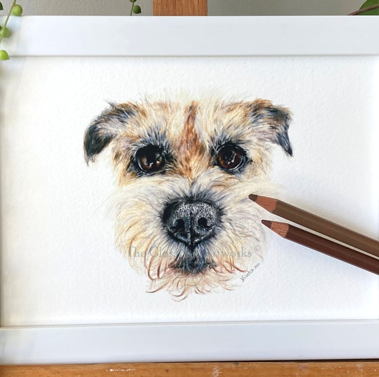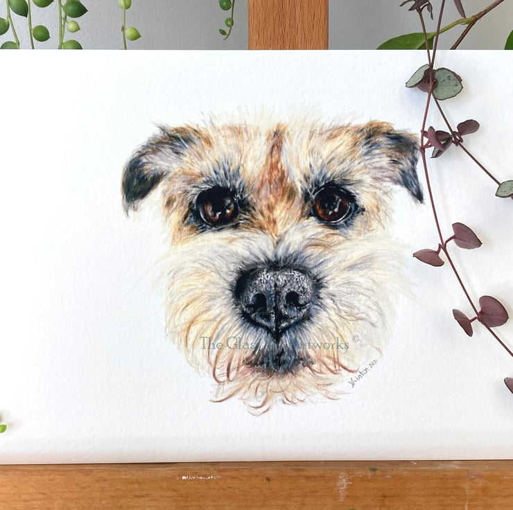 A print of my original coloured pencil drawing of a Border Terrier, available in two sizes, A4 & A5. Printed on to thick impressive high quality 316gsm fine art paper, which is 100% cotton rag with a wonderful soft grain texture to it which gives it the look and feel of my original artwork. All my artworks are of my original design and work and as such are individually copyrighted. This listing is for the print only, no frame included. The print will be packaged very securely in packaging which is recyclable, including a biodegradeable cello sleeve, rigid mailer and protective hardboard and greyboard.