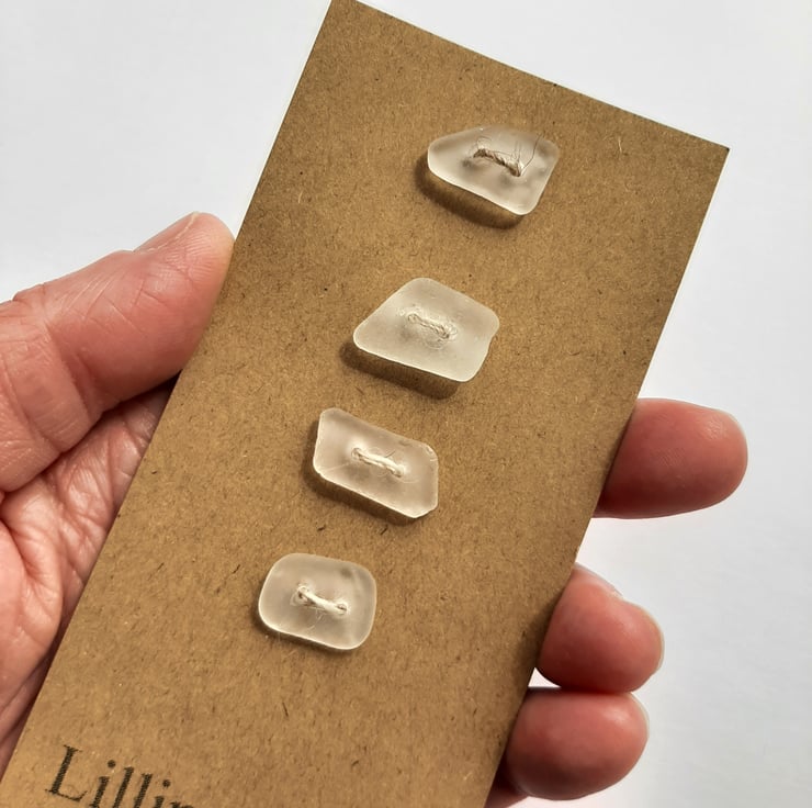 These buttons have been handmade from genuine sea glass that has been collected on the beaches of the Isle of Wight.