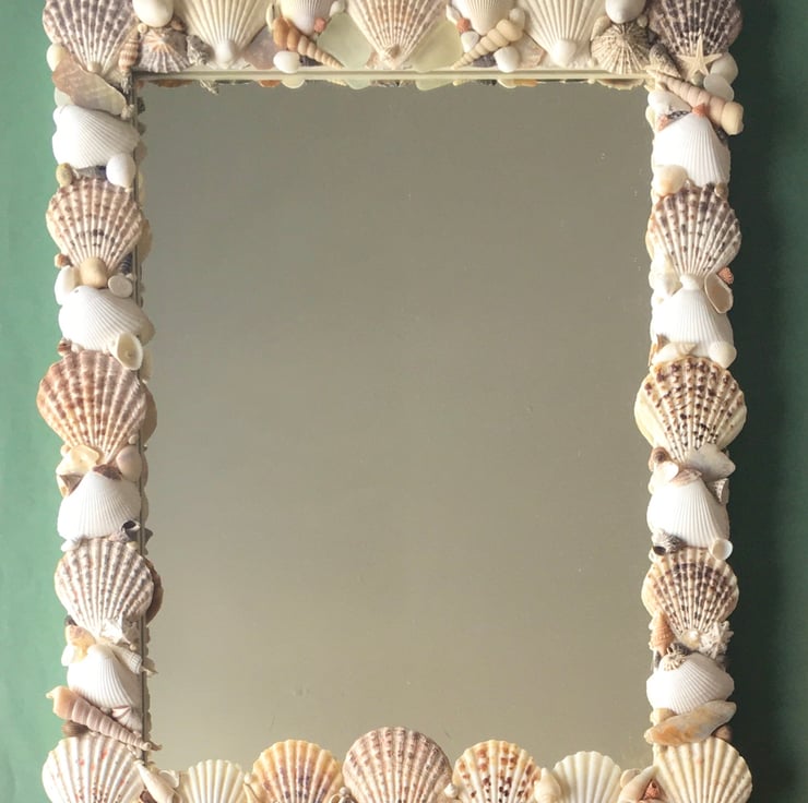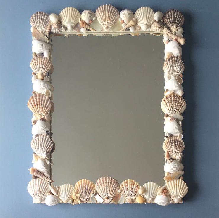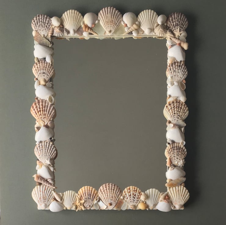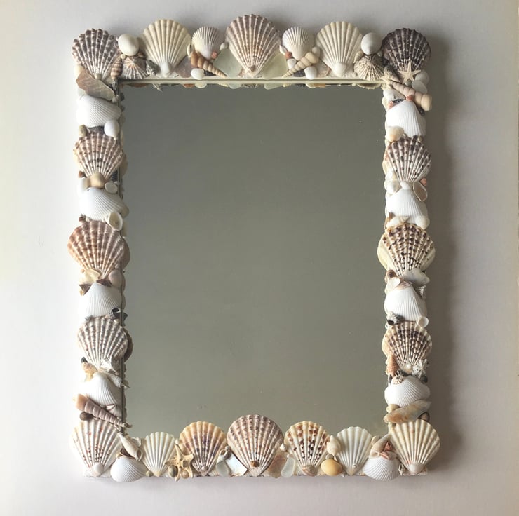 Unique and individually made handcrafted natural seashell mirror