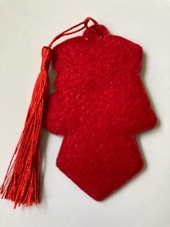 Measures approximately 2.5 ins wide x 4 ins long excluding the tassel.
