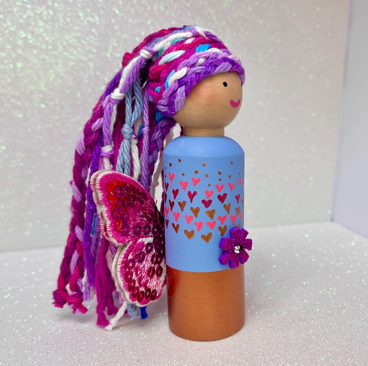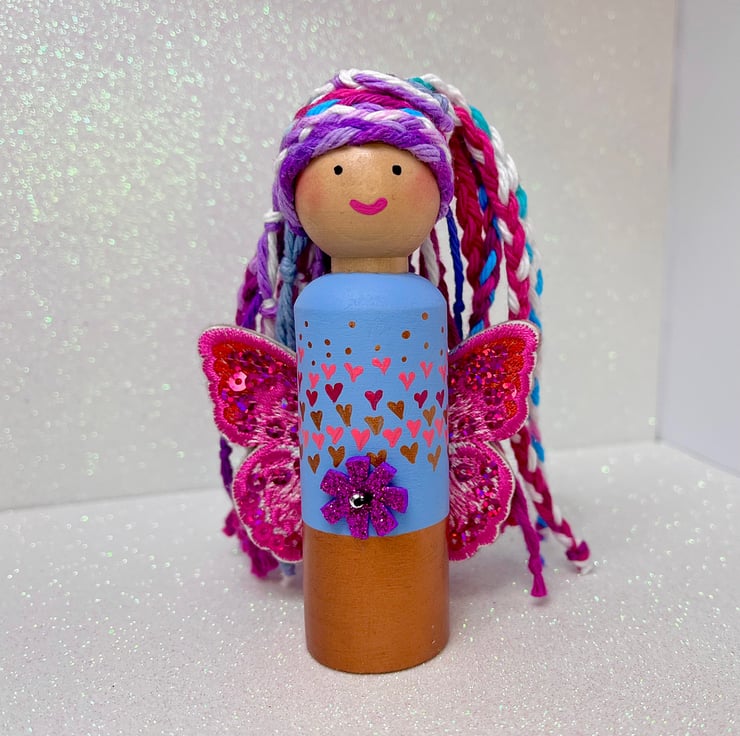 This listing is for our Pink Rainbow Fairy Peg Doll Ornament.