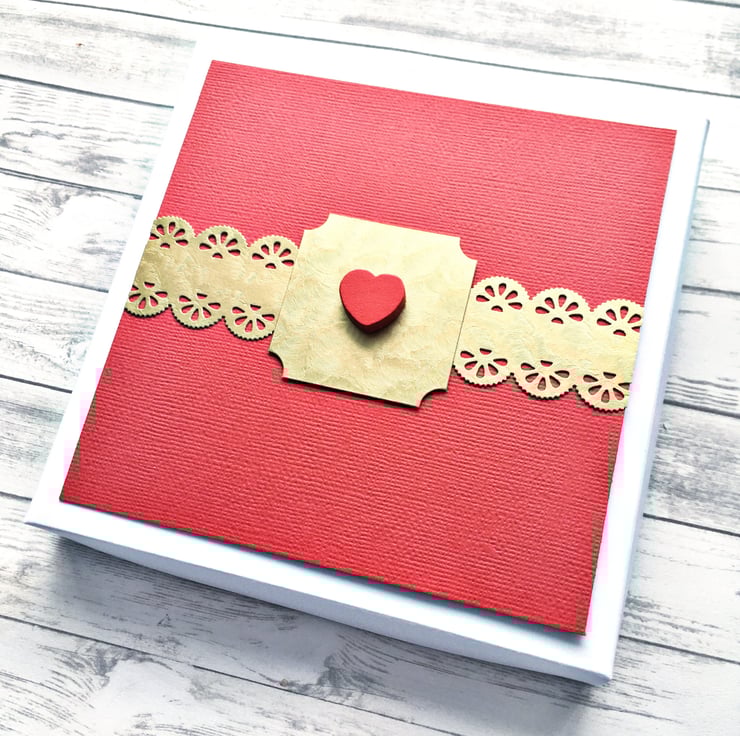 If you would like your card to be wrapped in gold polka dotted tissue paper and presented in a beautiful gift box decorated with a heart then you can select that option instead for a small additional cost after adding to basket.