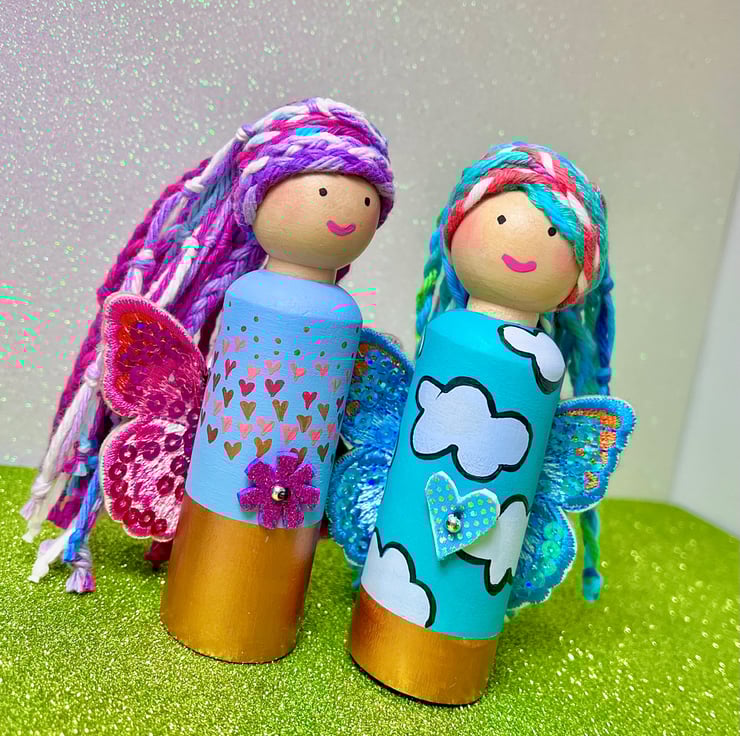 This listing is for our Blue Rainbow Fairy Peg Doll.