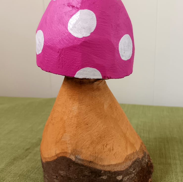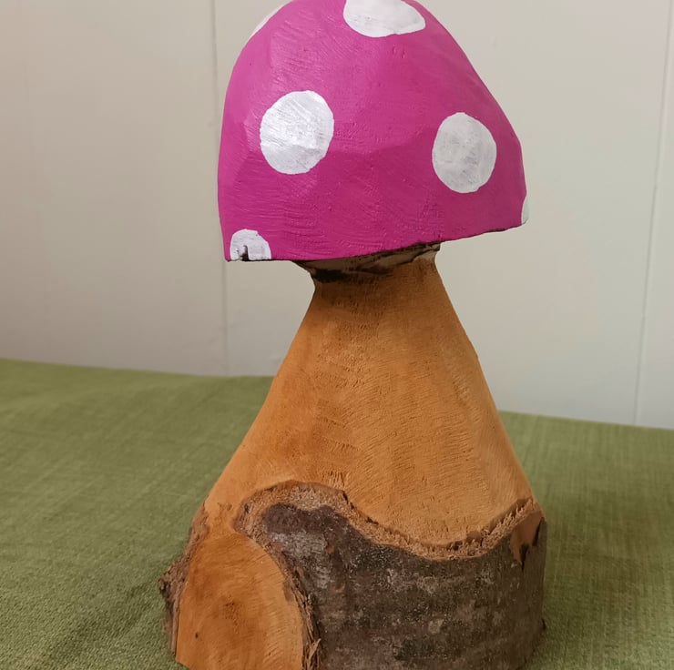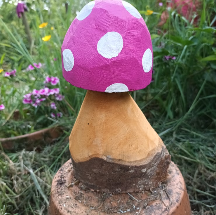 This pretty toadstool is carved from Douglas Fir and makes a lovely, colourful garden (or home!) ornament.