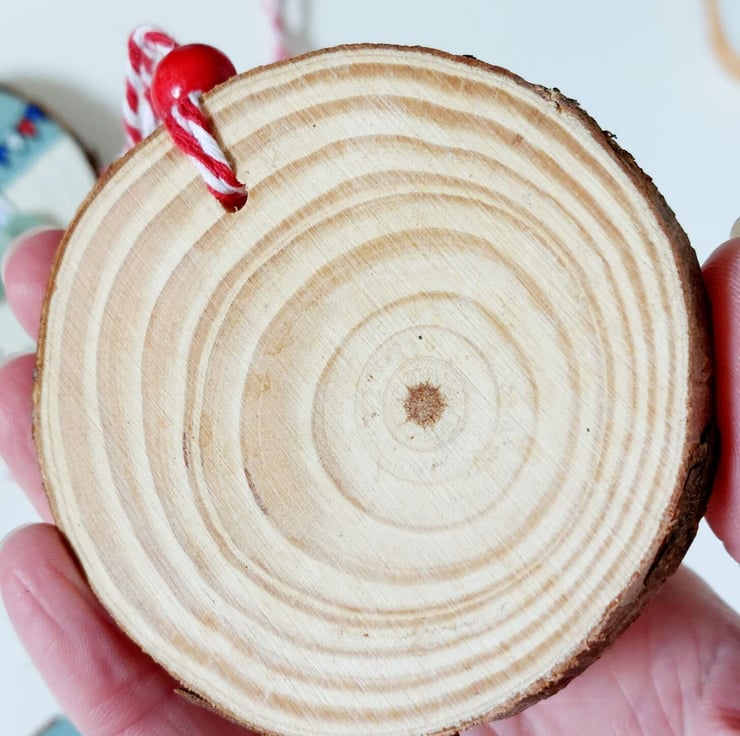 - The disc measures approx 7cm x 7cm and the drop from the top of the string to the bottom of the slice is approximately 15cm.