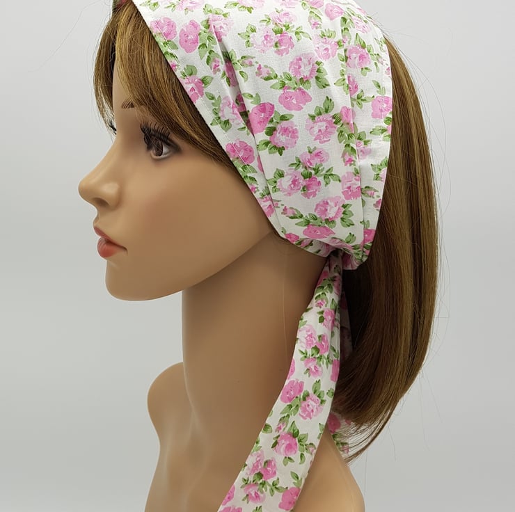 Summer hair covering for women, wide cotton head scarf, floral bandanna.