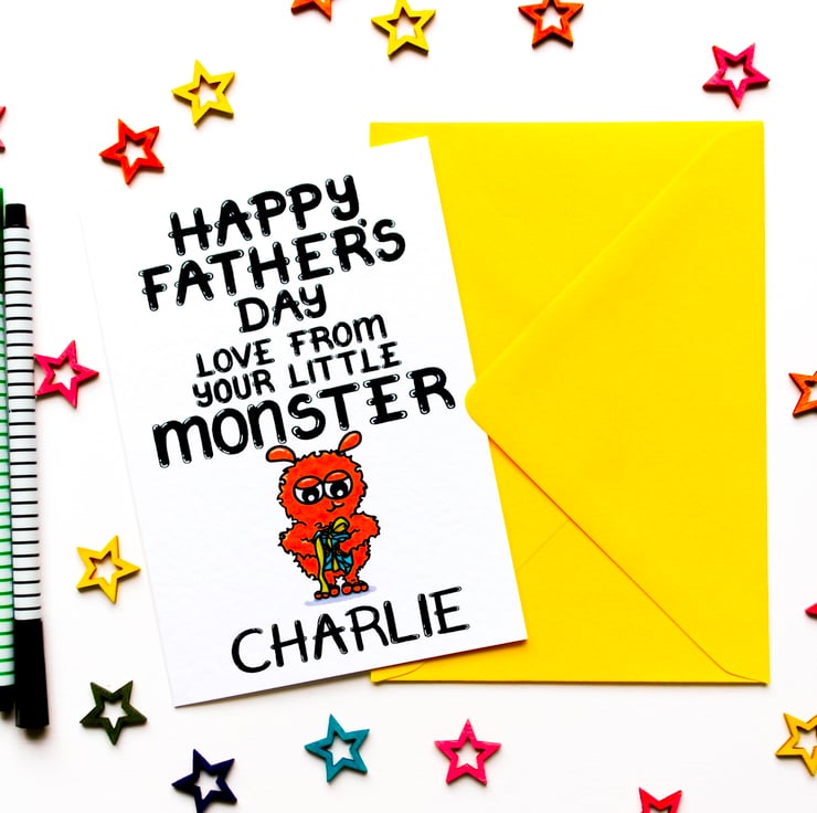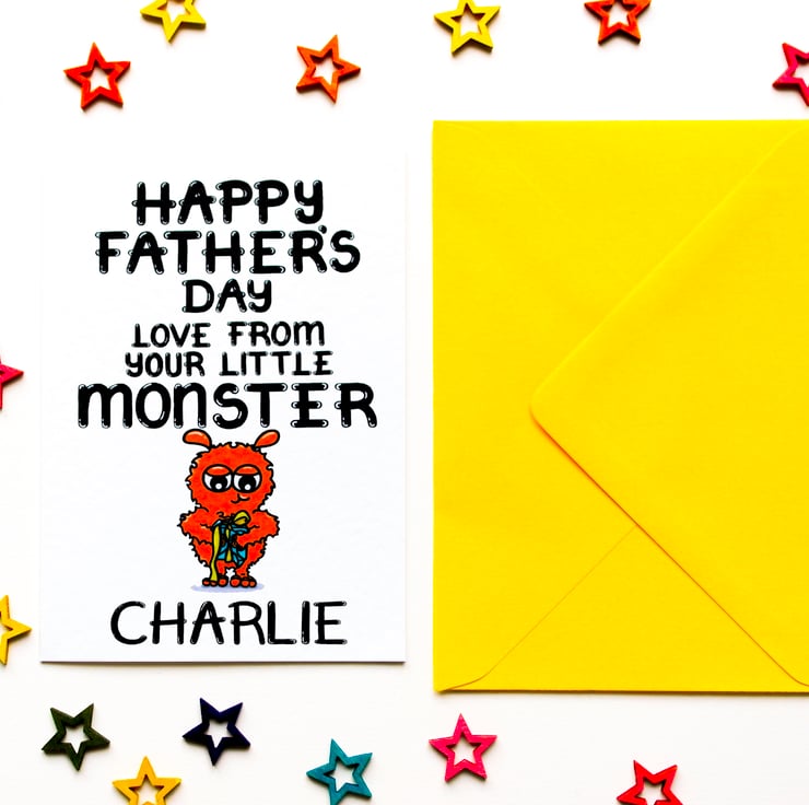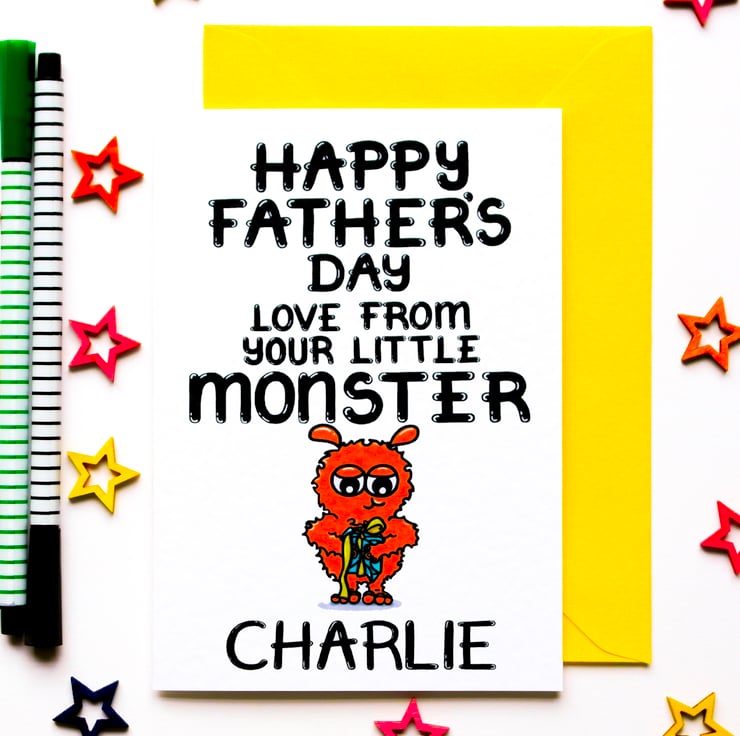 Greeting on front: HAPPY FATHER'S DAY LOVE FROM YOUR LITTLE MONSTER (NAMES)