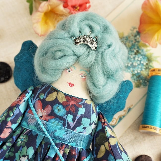 I wanted to make a fairy for a while but a more experienced fae not a teenage waif, so I decided to make a Fairy God Mother. Inspired by Flora, Fauna and Merryweather in Sleeping Beauty my God Mothers are practical hard working fairies trying to bring a little magic into the world xx