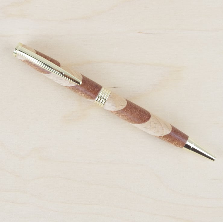 Most of the wood I use is locally produced. I do also use some exotic species but this is always obtained from a sustainable source. All the wood classified as “endangered” is recycled. The “South American Mahogany” was once my sister-in-law’s front door.
