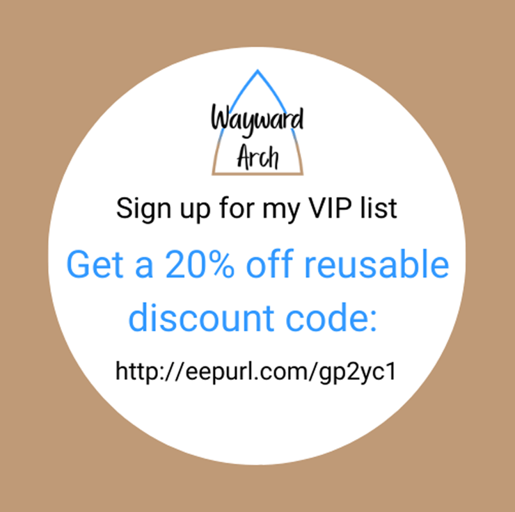 Sign up to my VIP list for a reusable 20% discount code. Cut and paste into browser: http://eepurl.com/gp2yc1