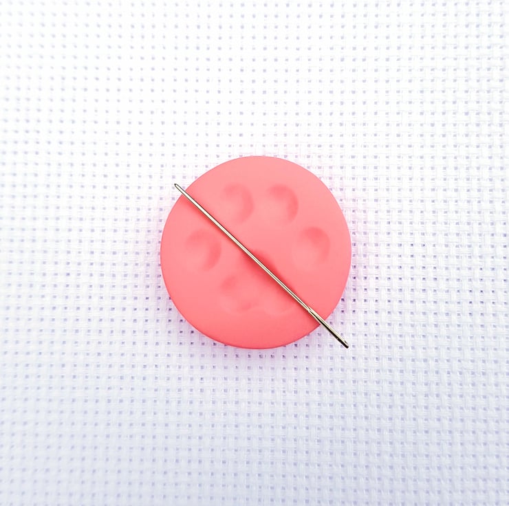 This smaller sized needle minder measures 2.9 cms across (just over an inch) and your needle stays attached to it with strong neodymium magnets.