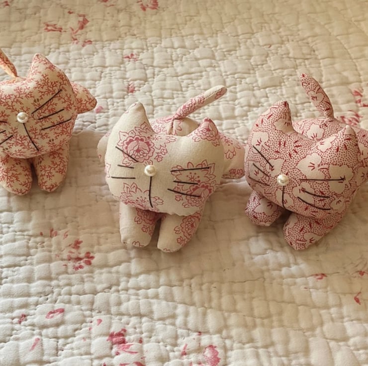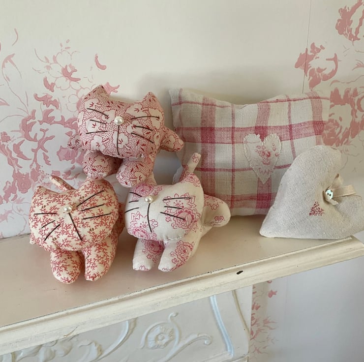 These adorable kittens are made from 100% cotton fabric, with embroidered features, finished off with a pearl bead nose.