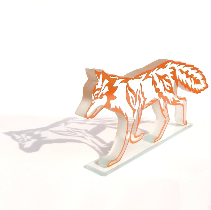 This little fox is made from one piece of chunky 10mm thick clear float glass that has been cut to shape using a water jet cutting machine.