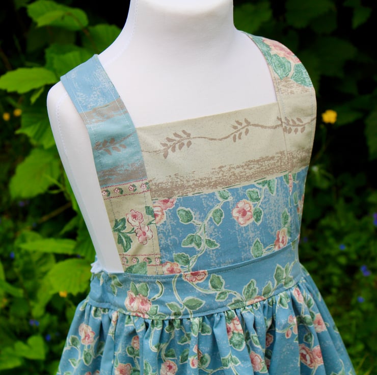 We have made this dress with cross over, button up straps at the back, so there are no fiddly bows or anything that can come undone whilst your little one is wearing the dress. The back waist is elasticated to fit your little one comfortably.