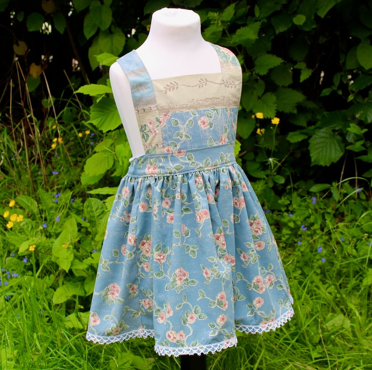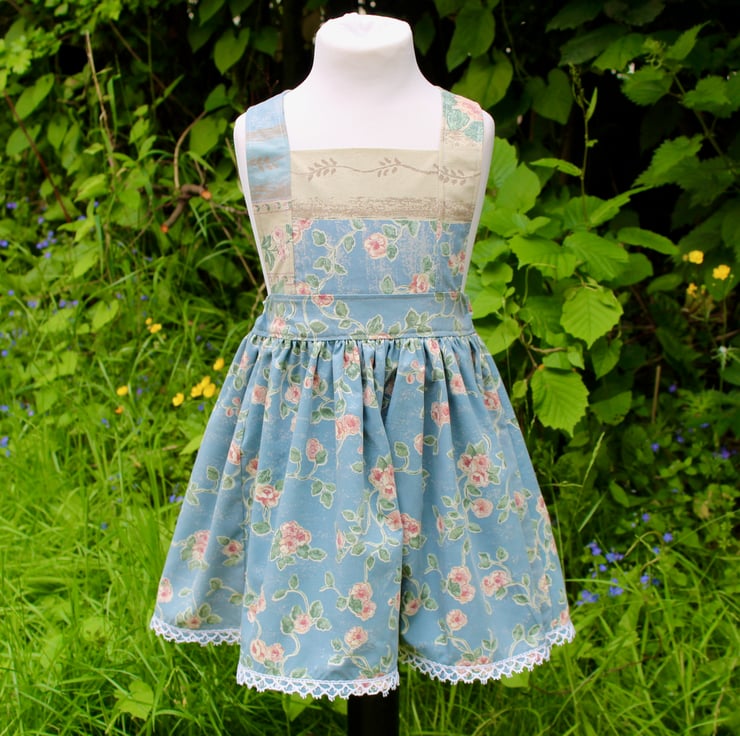 This dress is made in a cute apron / pinafore style, so it can be worn as is but we think it would look adorable with a pretty little blouse underneath. It can even be worn throughout the winter with a cosy knit top, woolly tights & boots!