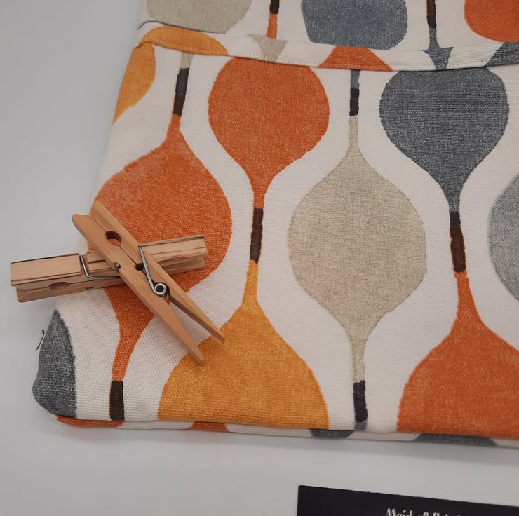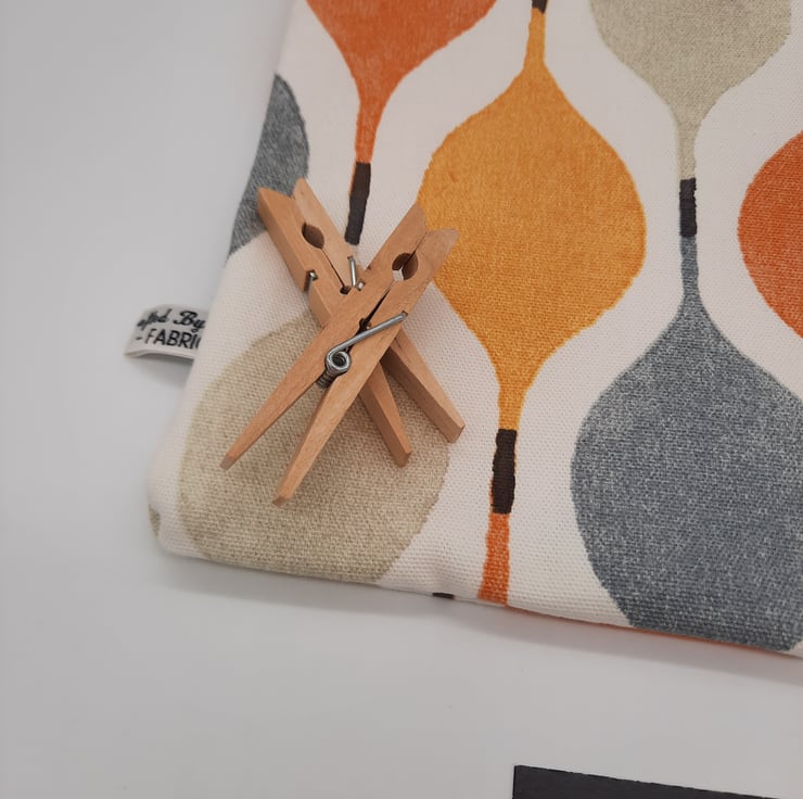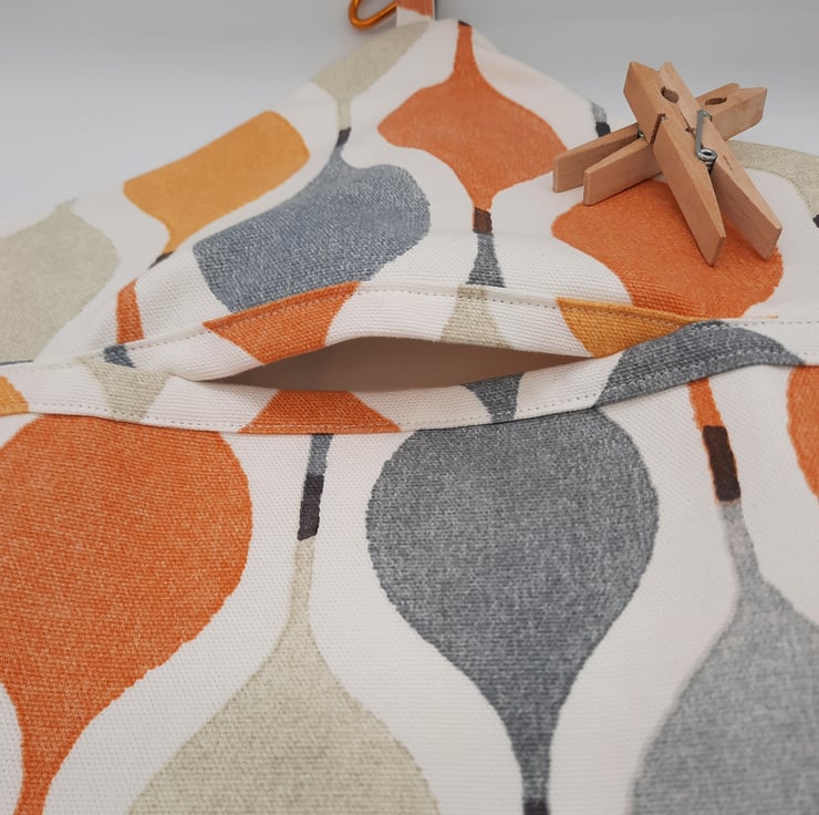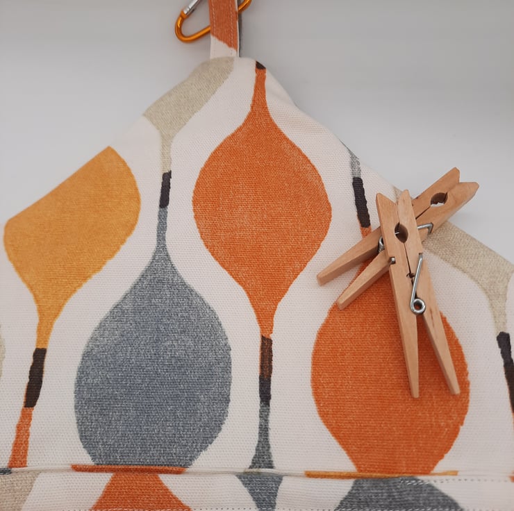 Orange, yellow, grey and cream droplet pattern clip on peg bag.