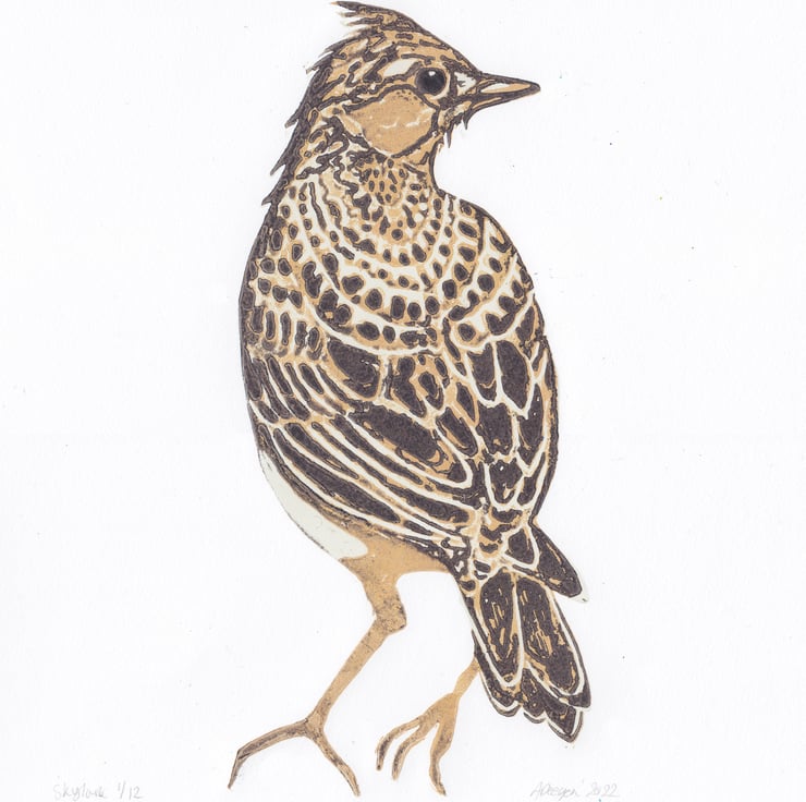 Original lino print 'Skylark'